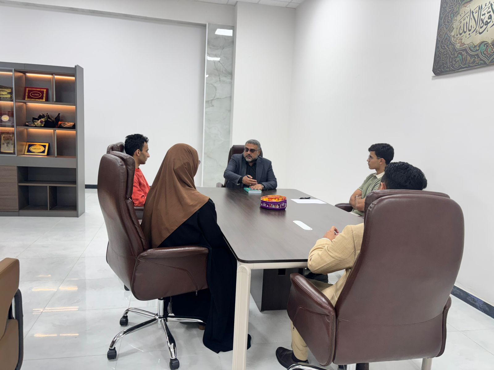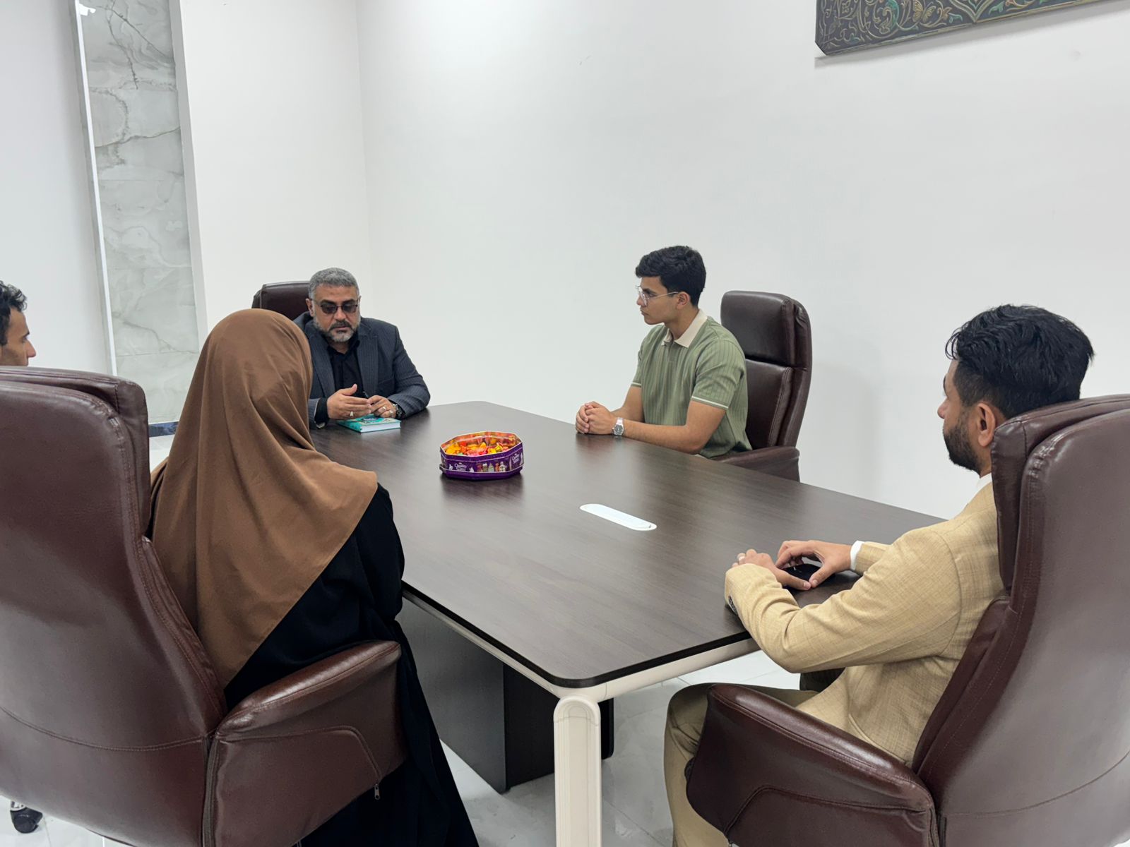 Within the framework of field follow-ups on student affairs, the Dean, Assistant Professor Dr. Laith Mohammed Abbas Al-Husseini, held an extensive meeting with first-year student representatives. The meeting, attended by the Head of the Student Affairs Division, Asst. Lect. Ali Aziz Kadhim, aimed to monitor the educational process and guide the academic path of new students.